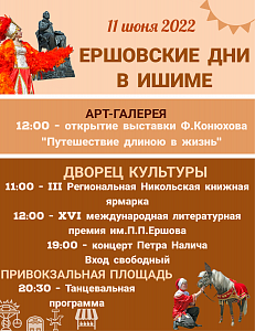 Ценители литературного творчества приглашаются на открытие III Региональной Никольской книжной ярмарки, где смогут познакомиться с творчеством писателей и поэтов Тюменской области, посетить выставку-ярмарку книг издательств, книготорговых организаций и выставку ишимского музея, литературный марафон, парад творчества «Народные краски».