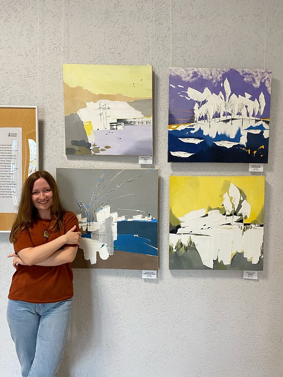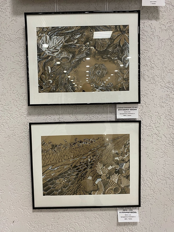 Вики Семиренской. К сожалению, картины временно убраны, но обещали вернуть! У Вики цветы пока остались, но есть ещё! Ребята наши из ДШИ ИЗО ТГИК участвуют.