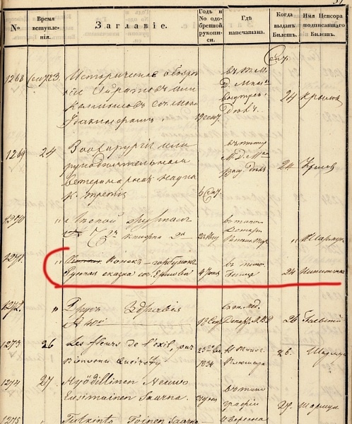 – 4 июня тот же А. В. Никитенко выдал цензурное разрешение на выпуск книги «Конёк-Горбунок. Русская сказка», соч. Ершова;