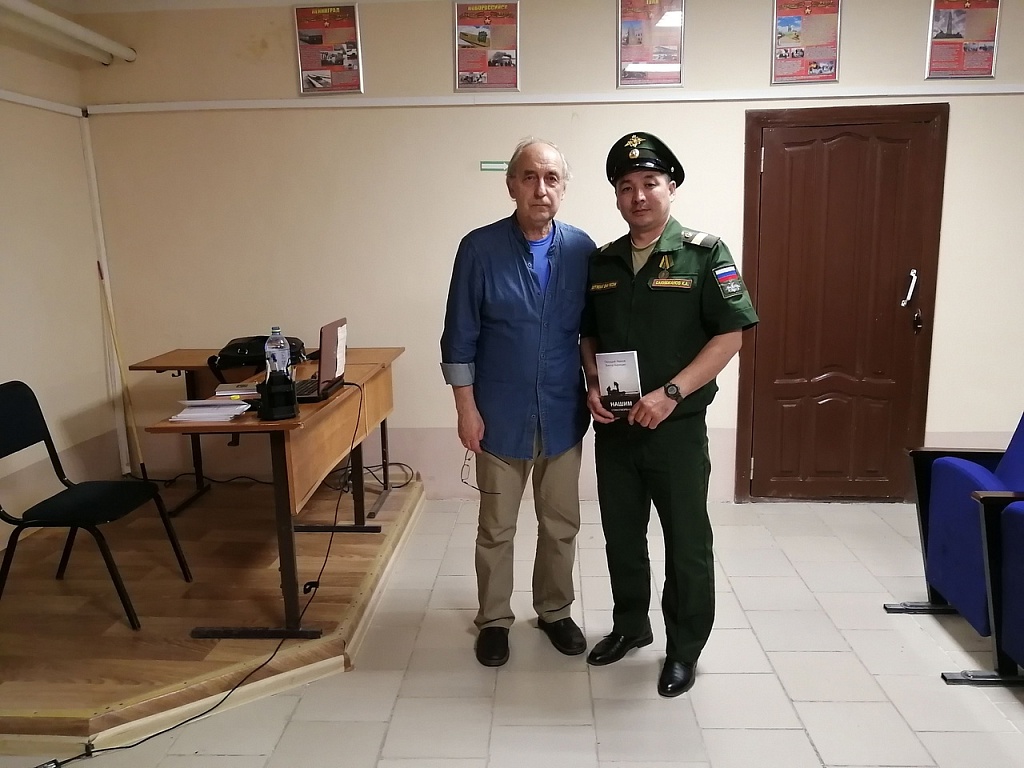 Время вносит свои коррективы - в этом году в рамках Ершовских дней меня пригласили выступить в сапёрный полк. который находится в Ишиме. Представил ребятам нашу с Виктором Кирюшиным совместную книгу стихов "Нашим", написанную после поездок в воинские части, в госпитали и в зону боевых действий. Пообщался с контрактником, зубром сапёрного дела. много раз бывавшим на войне, старшим сержантом Канатом Сахиджаповым (на фото).