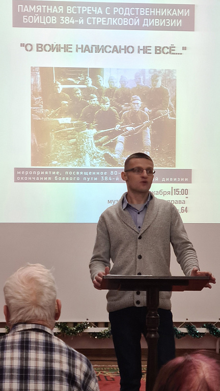 По словам научного сотрудника музейного комплекса, ведущего встречи - Константина Иванова, собранного материала хватит на целую книгу, и наша задача пока живы родные бойцов сохранить и передать достоверную информацию тех тяжелых лет.