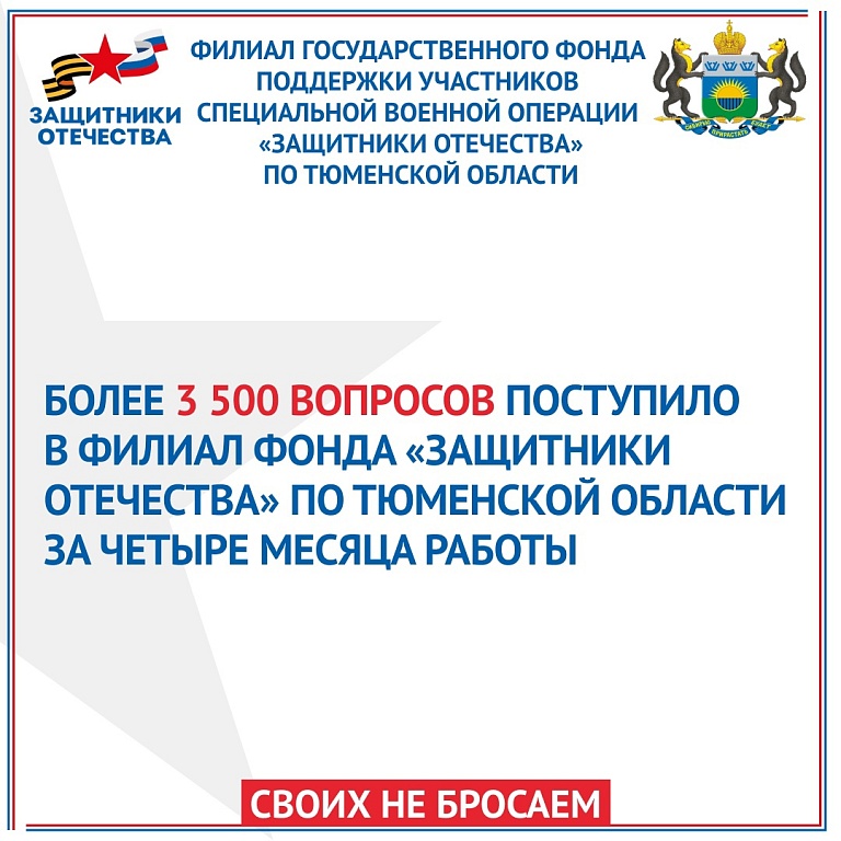 В филиале фонда «Защитники Отечества» в Тюменской области подвели итоги работы за 4 месяца.