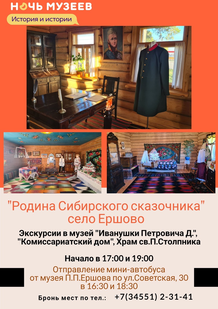 Отправление на мини-автобусе от музея П.П.Ершова, ул.Советская,30 в 16:30 и 18:30