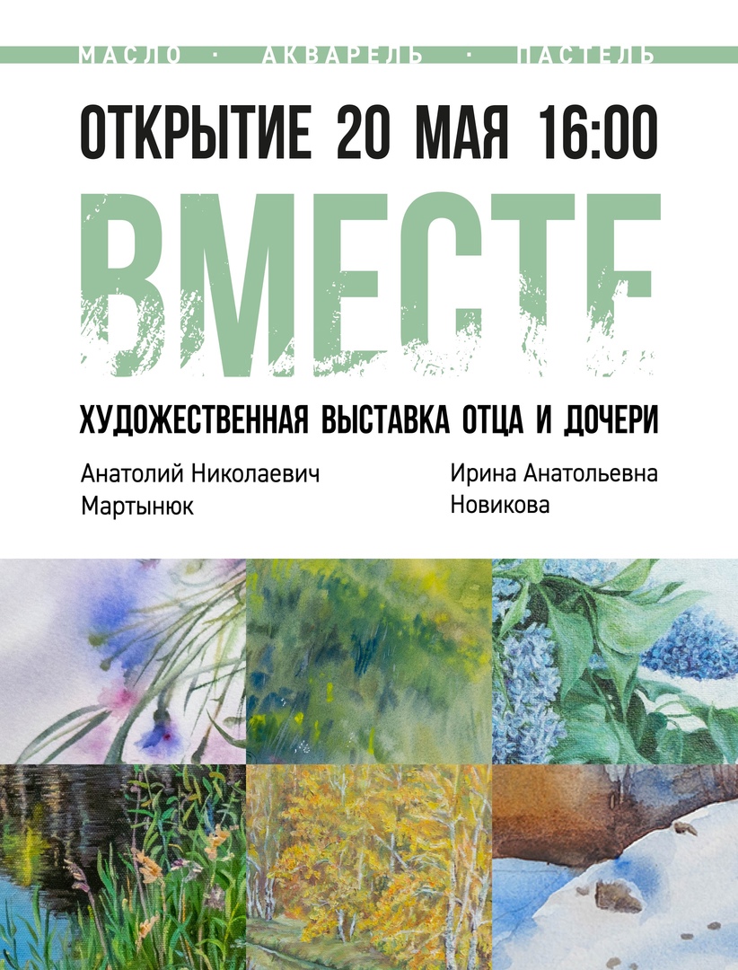 20 мая 2023 года в 16:00 в арт-галерее состоится открытие выставки изобразительного искусства, где соединяются реалистичная масляная живопись Анатолия Мартыюка и виртуозные акварели его дочери, Ирины Новиковой.
