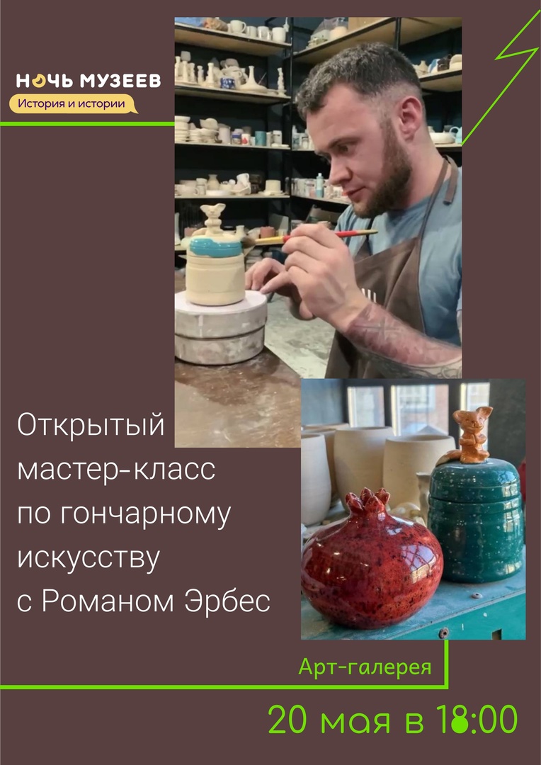 Что такое "колобок", как правильно глазурировать и "вытягивать" глину - обо всём этом расскажет Роман Эрбес на открытом мастер-классе по гончарному искусству.