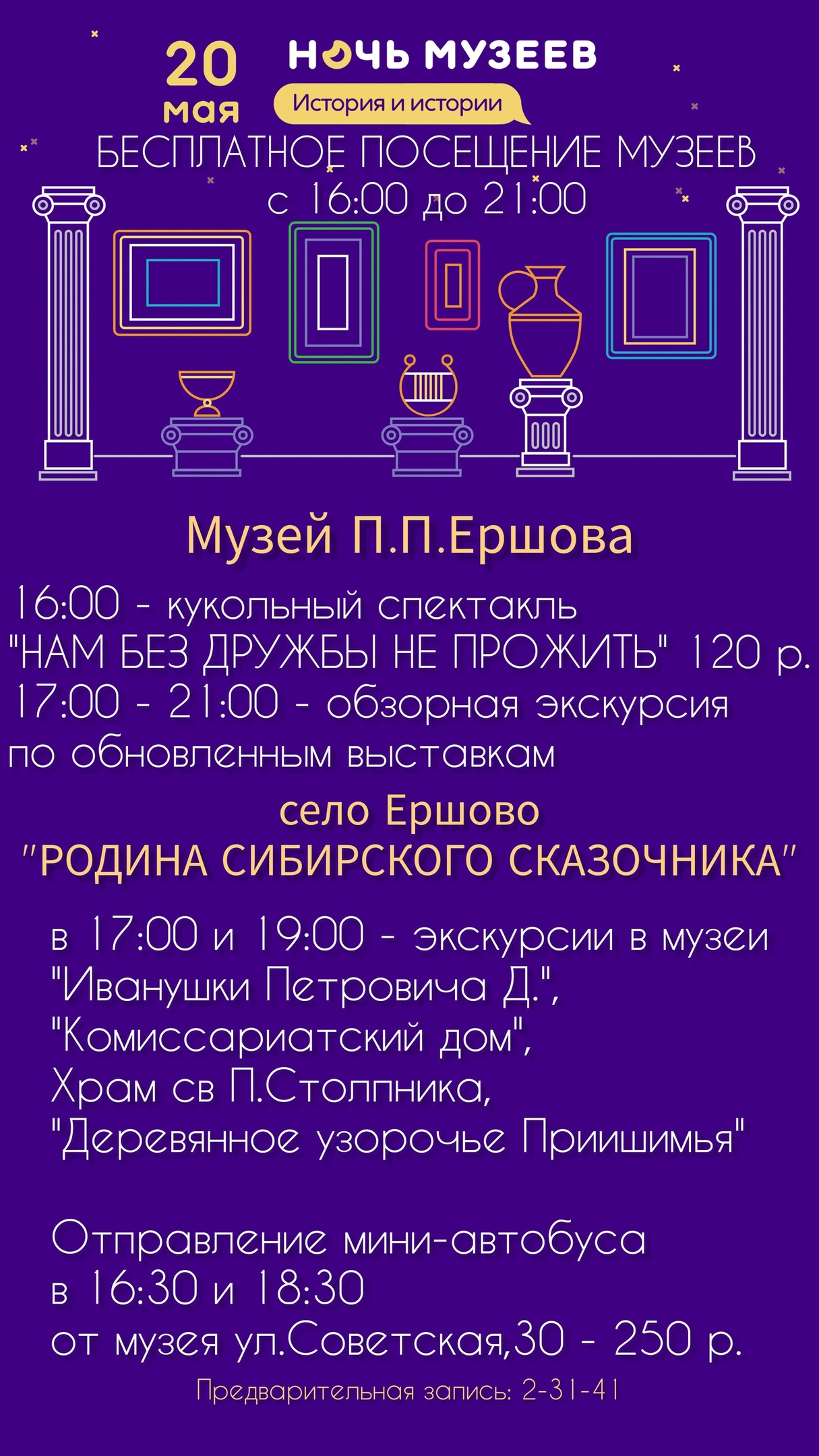 - А также ГЛАВНАЯ ОСОБЕННОСТЬ мероприятия в этом году - добавление еще одной площадки для приема посетителей - работа музеев на родине сибирского сказочника в селе Ершово!