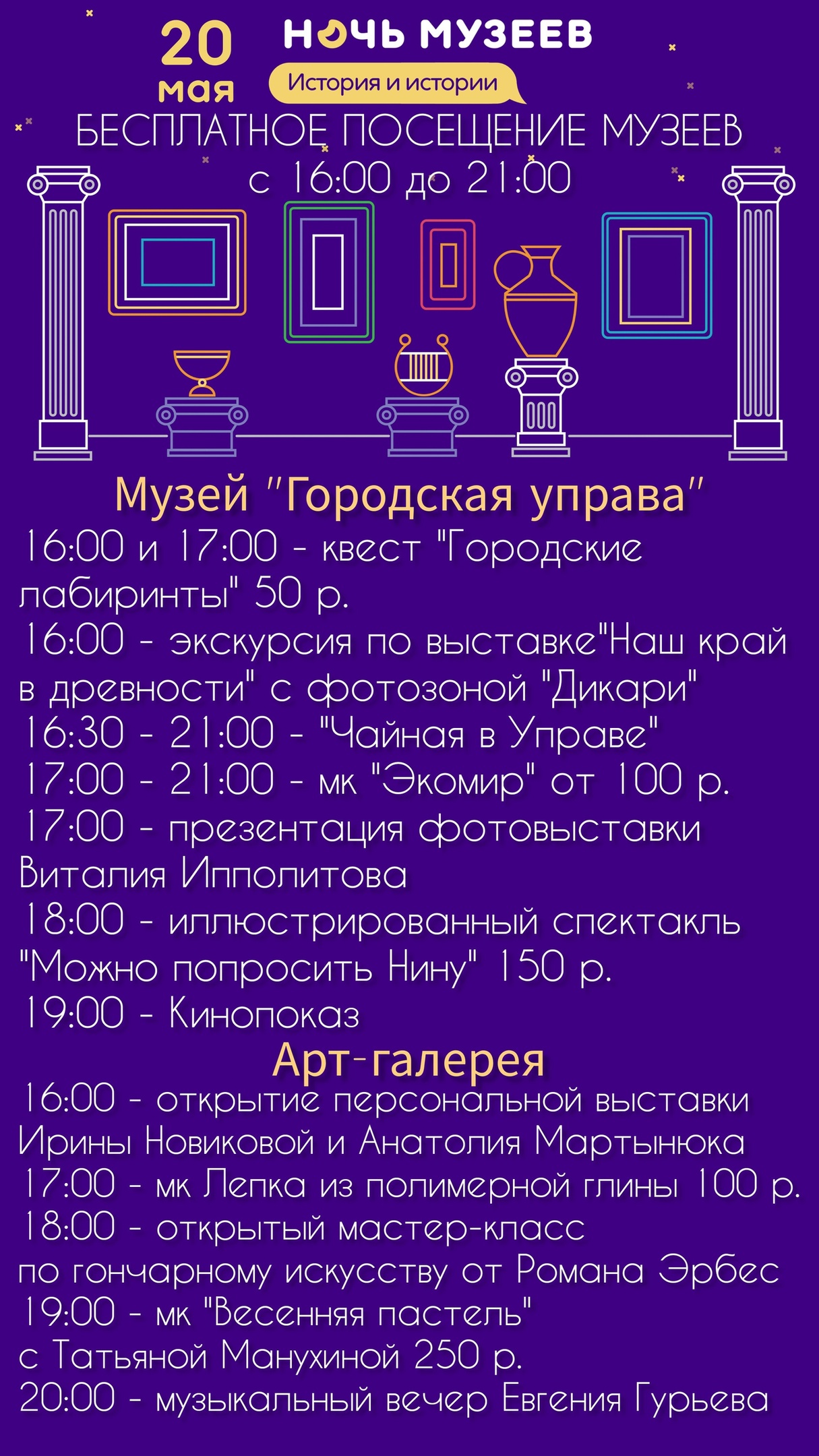 - в городе все музеи будут открыты для бесплатного посещения с 16:00 до 21:00