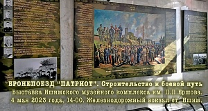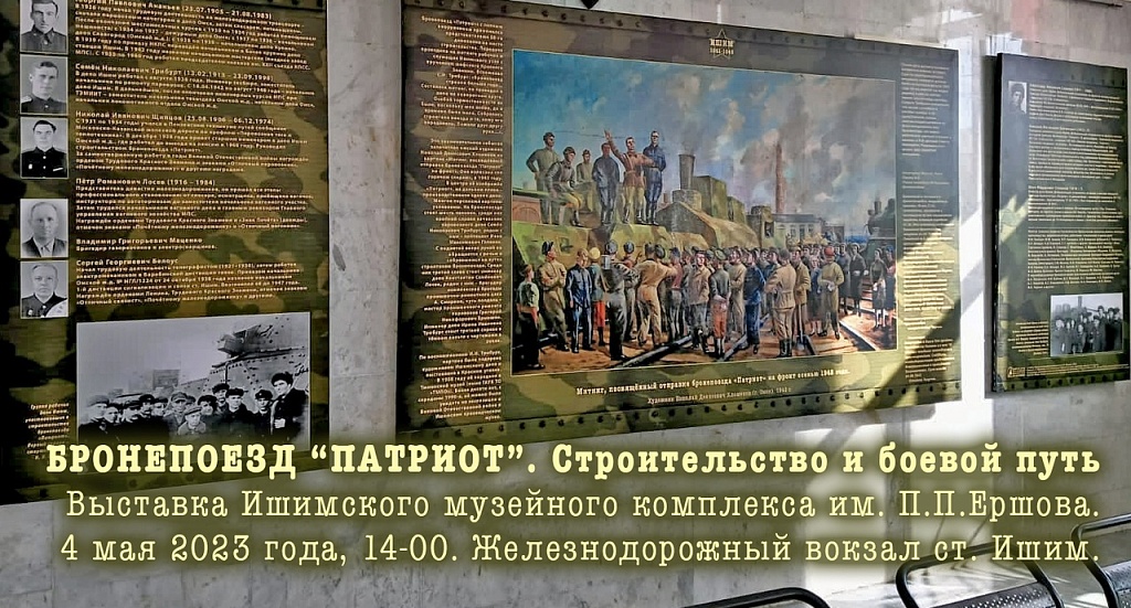 80 лет назад, в апреле 1943 года, бронепоезд «Патриот», построенный в Ишиме и вошедший в состав 58-го отдельного дивизиона бронепоездов, начал свой боевой путь. Этому событию посвящена созданная Ишимским музейным комплексом им. П.П.Ершова (при поддержке АНО "Вертикаль" и администрации города Ишима) выставка «Бронепоезд «Патриот». Строительство и боевой путь» на семи планшетах, размещённая в зале ожидания железнодорожного вокзала станции Ишим. На ней представлены как известные, так и вновь выявленные ишимскими музейщиками сведения о трудовом подвиге деповчан.