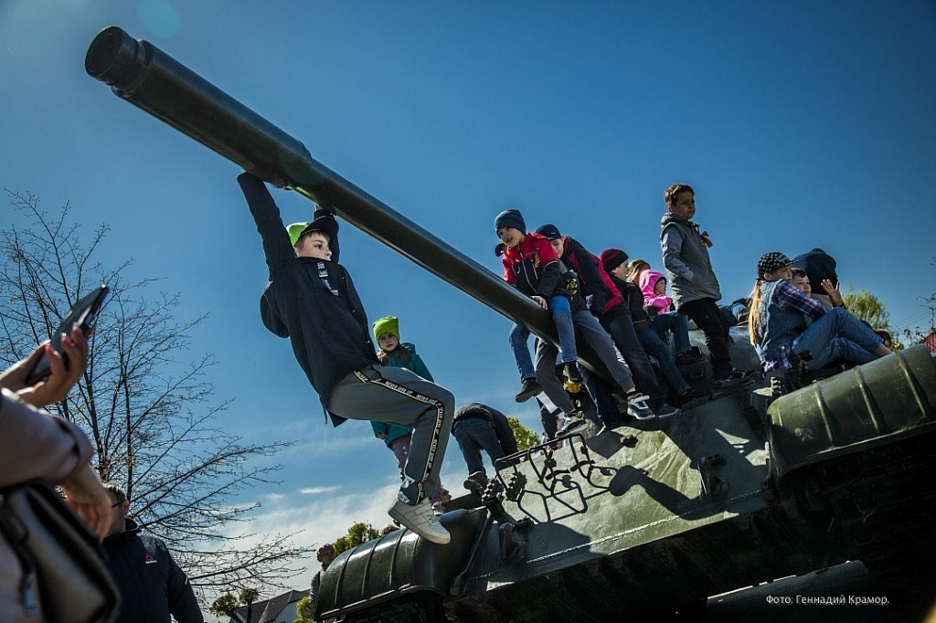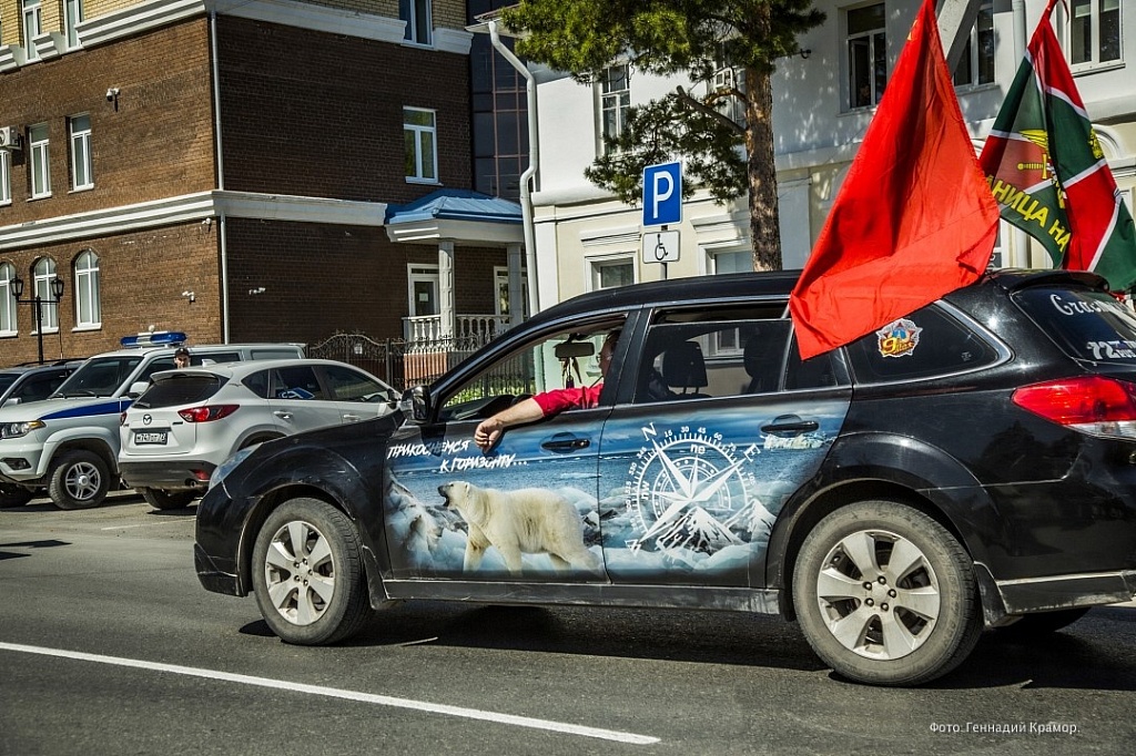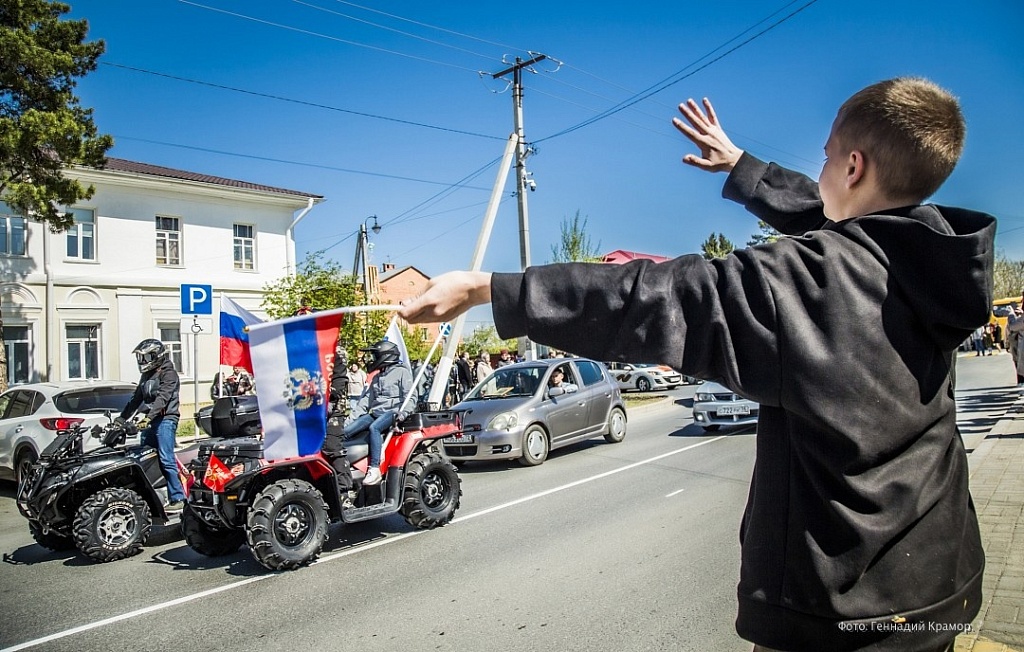 Главным событием стало моторизованное шествие, точкой кульминации которого явилась Соборная площадь. Перед этим здесь состоялось скромное, без речей, возложение цветов. Кому как, а мне показалось, что такой вот сдержанный формат лучше всего и подходит для этого праздника.