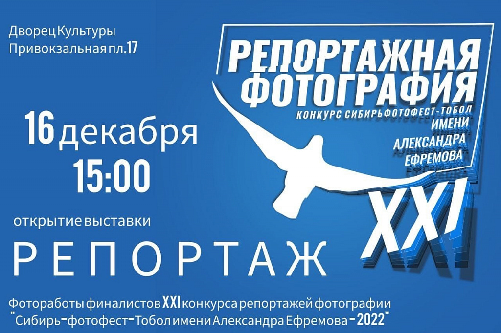 Уважаемые любители фотографии! Приглашаем вас на открытие итоговой фотовыставки "Репортаж" победителей и призеров XXI форума репортажной фотографии "Сибирьфотофест-Тобол имени Александра Ефремова 2022», которая откроется в канун Дня памяти журналистов, погибших при выполнении служебных обязанностей - 16 декабря 2022 года во Дворце культуры по адресу: Привокзальная площадь 17. Начало в 15:00.