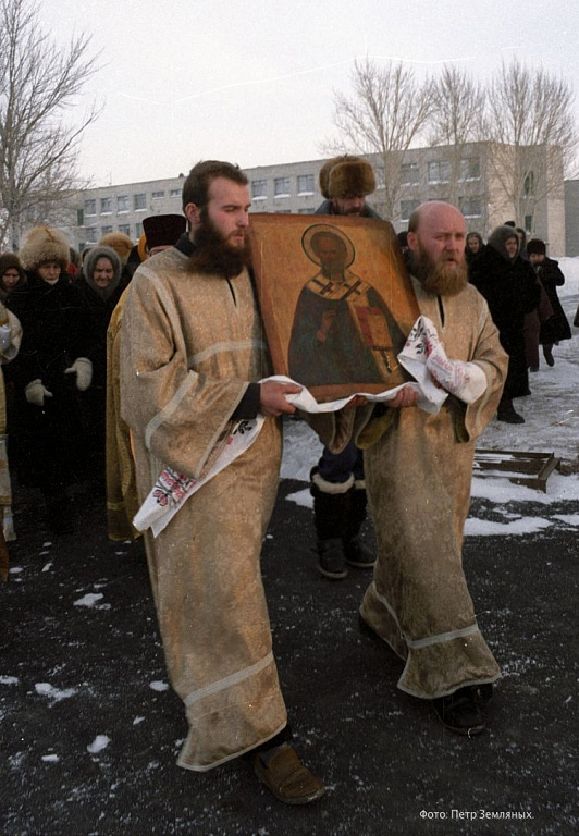 После закрытия собора в начале 1930-х он был разрушен и возрождён спустя шесть десятков лет трудами православной общины под настоятельством будущего епископа Евтихия. Ровно тридцать лет назад. 19 декабря 1992 года, в алтаре Никольского придела вновь была совершена Божественная литургия. Снимка этого исторического события, к сожалению, нет. В нашей подборке вы можете увидеть: