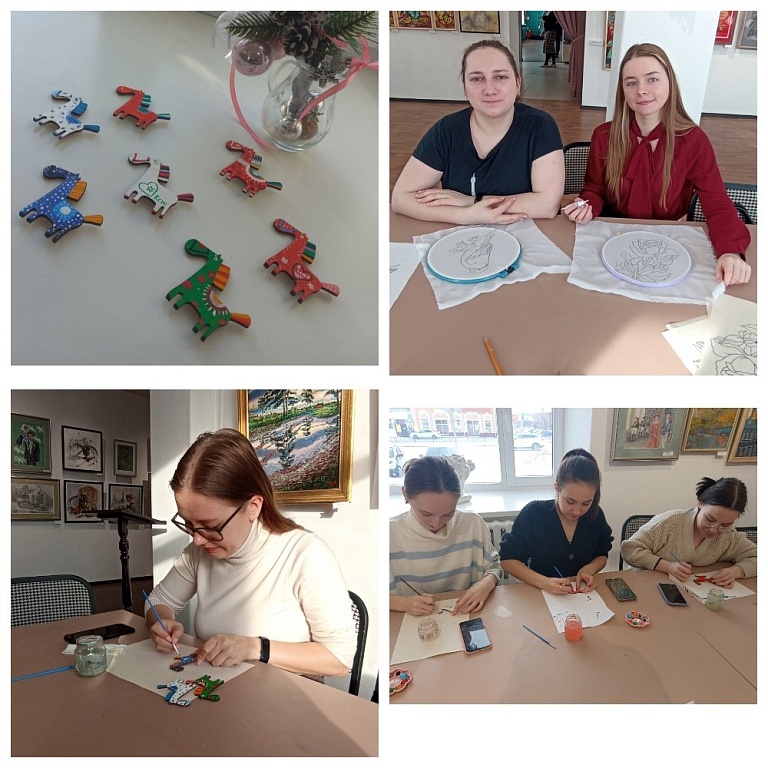 В очередной раз с большой теплотой нас встретила Арт-галерея, где студенты Ишимского педагогического института приняли участие в мастер - классах: роспись по шелку и роспись спила / броши. А также с большим удовольствием посетили выставку картин "Палитра Ишима" и скульптурных композиций.