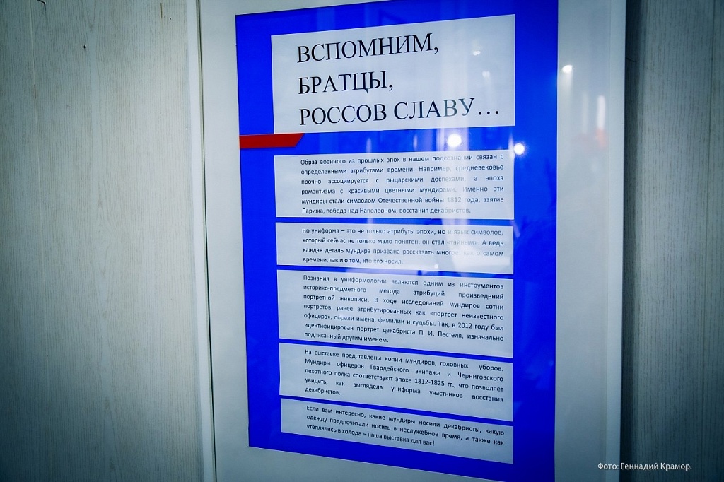 "Вспомним, братцы, россов славу". Выставка с таким названием открылась в музее "Городская управа" 10 февраля 2023 года. Её основа - коллекция тщательно реконструированных мундиров эпохи Отечественной войны из коллекции Павла Ананьина (г. Екатеринбург). На открытии автор сам рассказал о нюансах ношения мундира в Александровскую эпоху. Часовая лекция пролетела как миг. Также на выставке представлены предметы из фондов Ишимского музейного комплекса им. П.П.Ершова. Работать выставка будет всего полтора месяца, успевайте посетить её и приоткрыть для себя тайны мундира двухвековой давности!